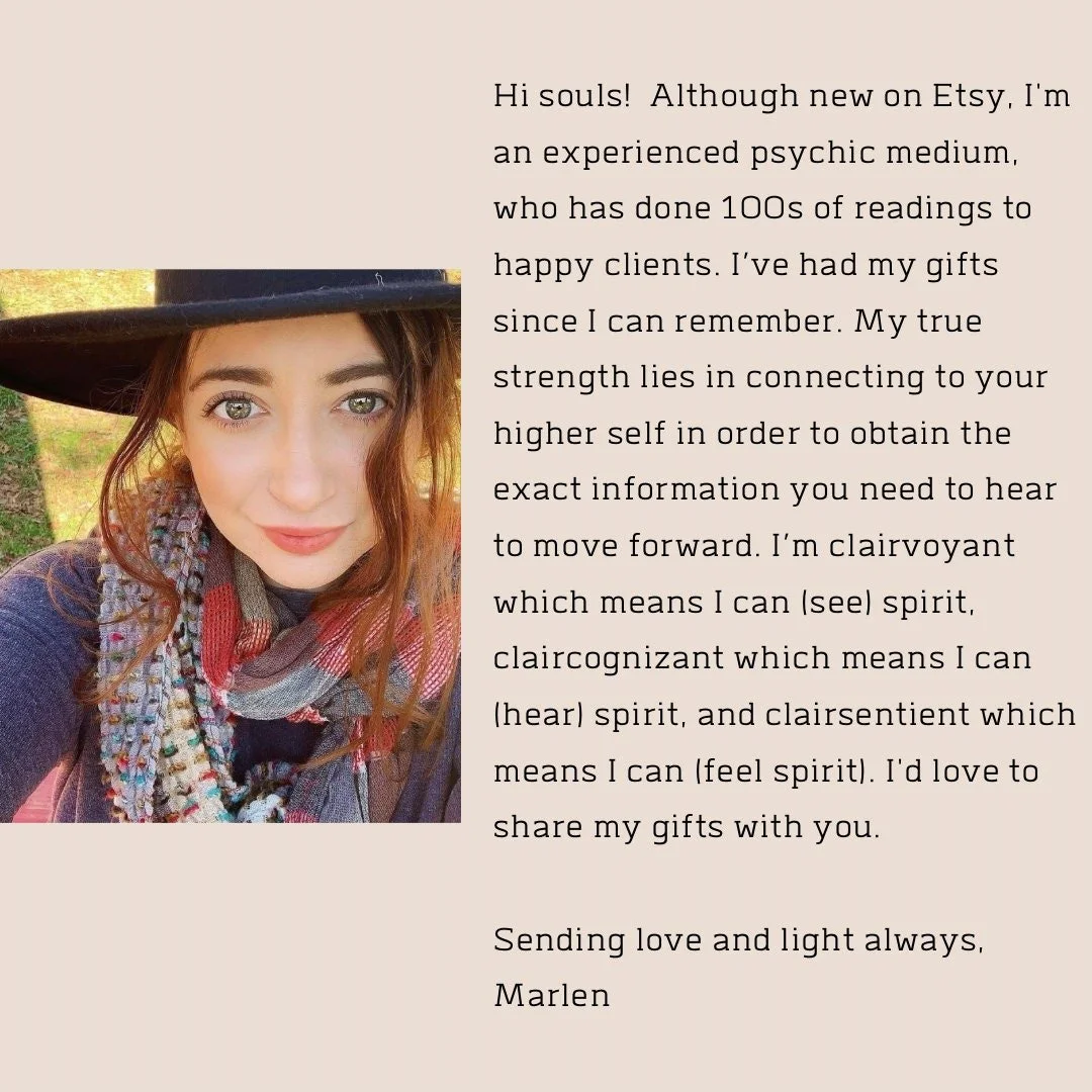 Psychic Readings Categories: All Spell Jars Apothecary Crystals Mystery Boxes Workbooks Magical Mug Candles Psychic Readings Enchanted Jewelry Oracle & Tarot Decks Spiritual Readings All / Psychic Readings All Spell Jars Apothecary Crystals Mystery Boxes Workbooks Magical Mug Candles Psychic Readings Enchanted Jewelry Oracle & Tarot Decks Spiritual Readings Psychic Reading - Spirit Guide Messages - Spirit Team Guidance - Tarot Reading - Oracle Reading - Mediumship $77.77